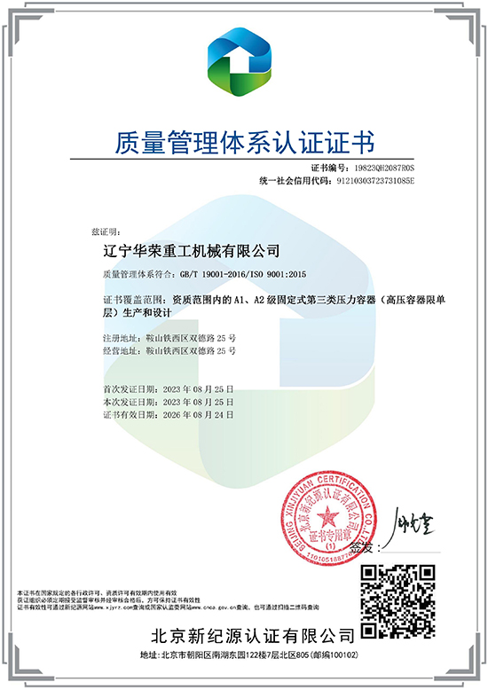質(zhì)量管理體系認(rèn)證證書